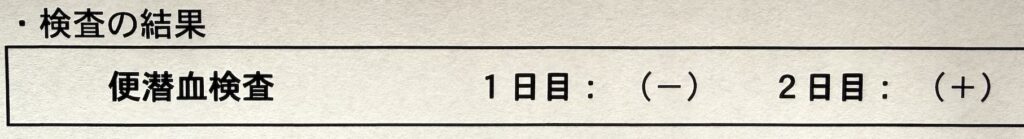 便潜血が 2日目だけ陽性 だったことでした。